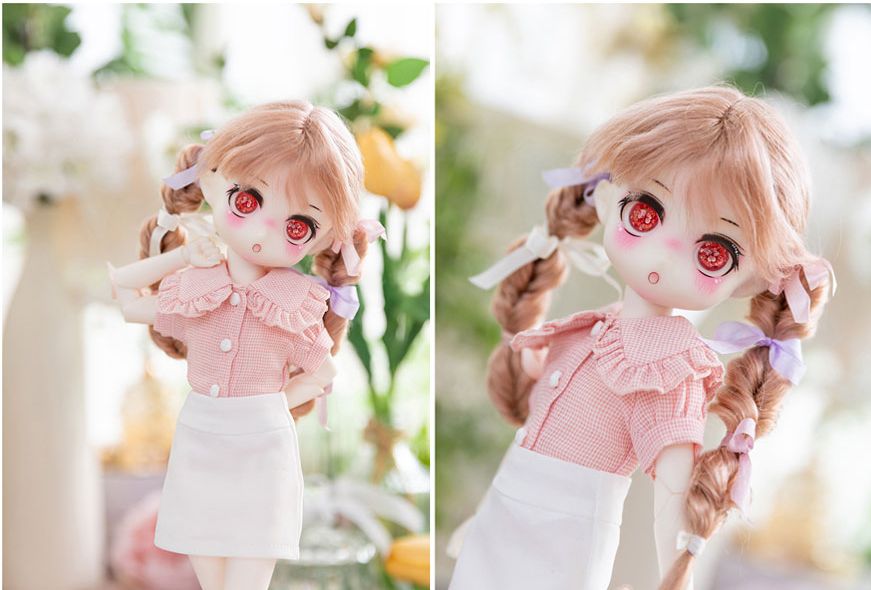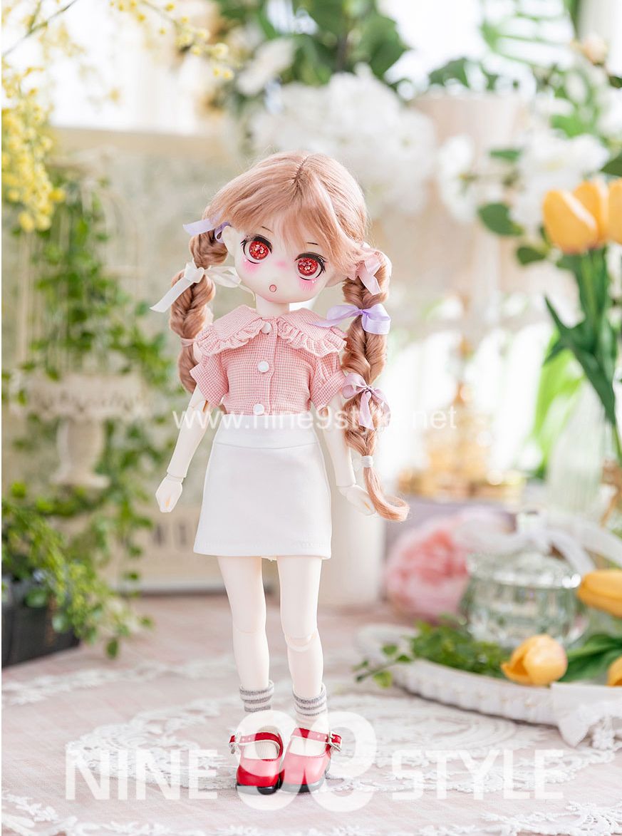 [YoSD/J30]Big collar crop blouse(Red check) - USD & Bebe27 & Jeujeu30