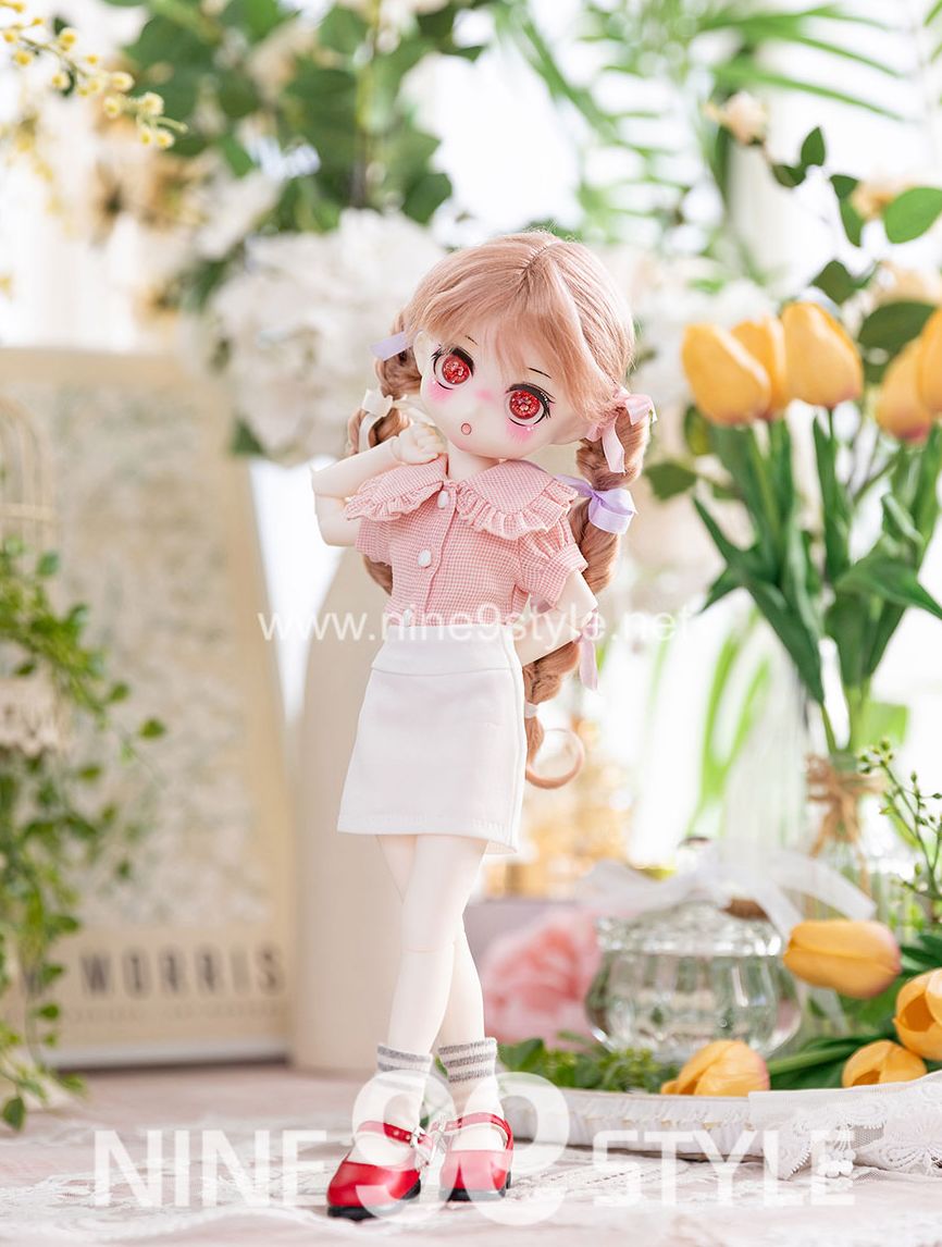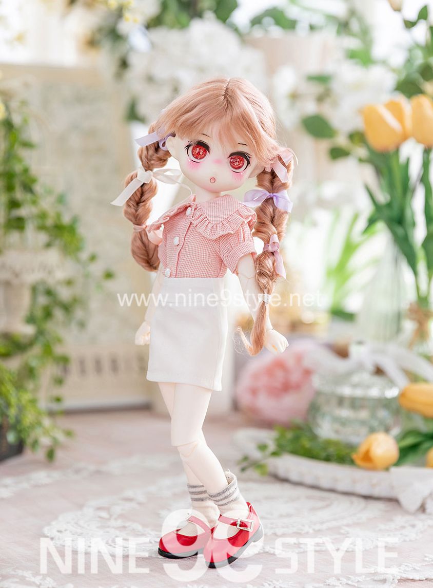 • [YoSD/J30]Big collar crop blouse(Red check) - USD & Bebe27 & Jeujeu30