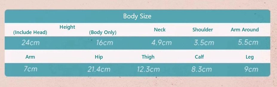 ※ 各サイズはメーカー公式データを記載しています。実際のドール・アイテムには個体差により多少の誤差があります。