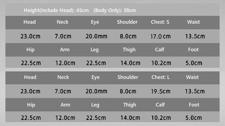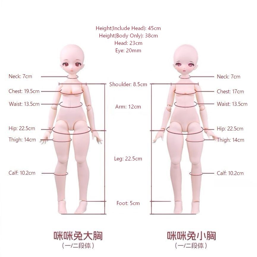 | 1/4 Girl 咪咪 Ver.2: 小胸 | 45 | 23 | 7 | 11 | 17 | 13.5 | 22.5 | 12 | --- | 22.5 | 14 | 5 | 2.3 | 9~10 | 20 | |