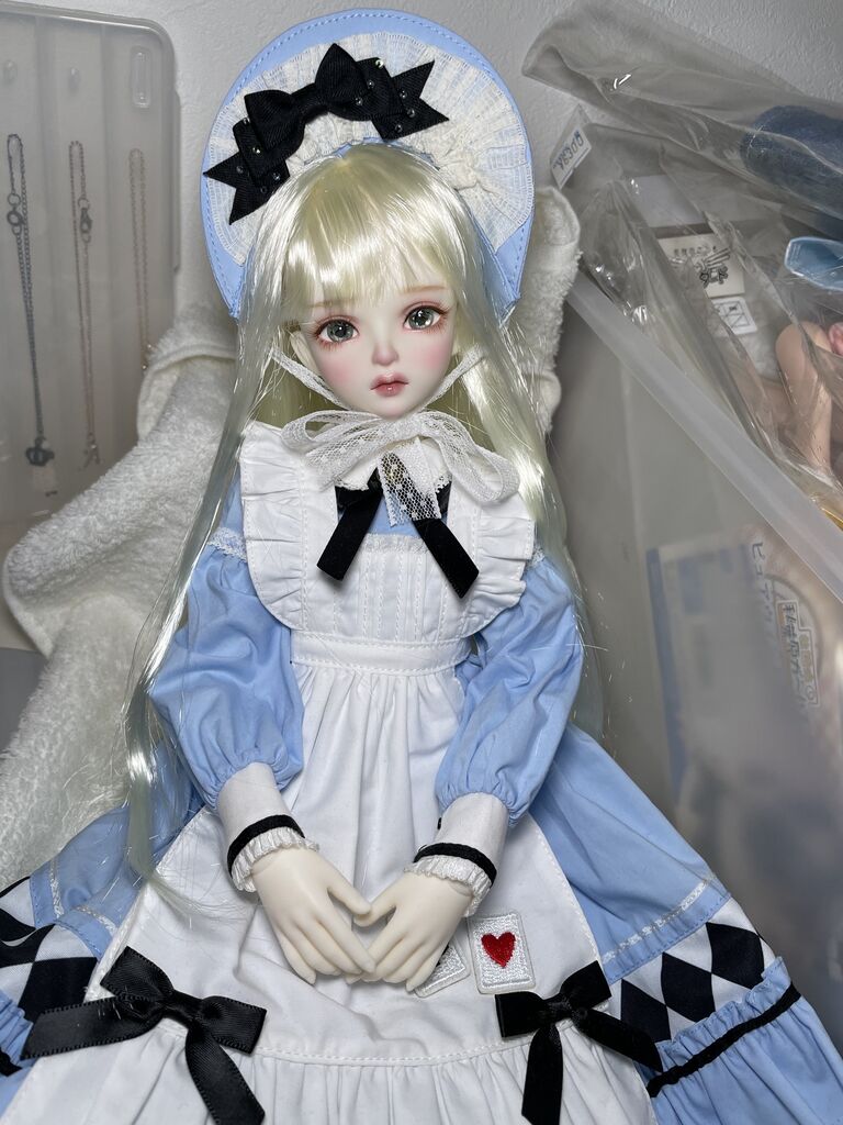 Cream Cheeezeが繊細な筆致で描くアリスのメイクアップと、DOLK初コラボとなる実力派アーティストJadeShineが仕立てるアリスのドレスセットによって、物語が醸し出すどこかアンニュイな世界観をも汲み取った、可憐で美しいアリスDeliaが完成しています。