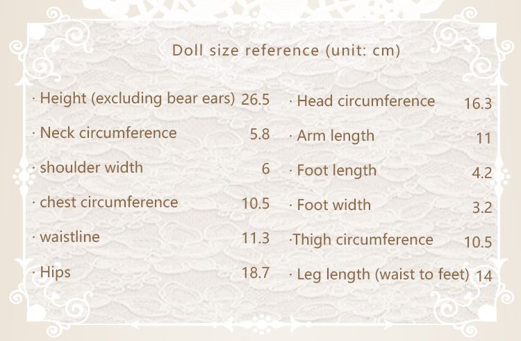 ※ 各サイズはメーカー公式データを記載しています。実際のドール・アイテムには個体差により多少の誤差があります。