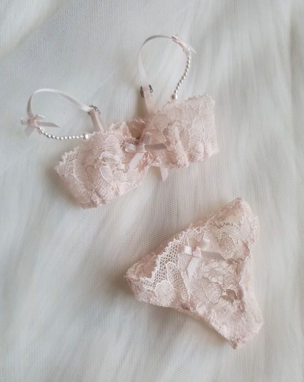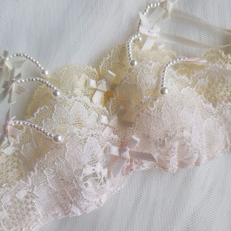 レースランジェリー・ライトピンク パールストラップ【珍珠肩带:60cm3分(胸围26.5-30)】