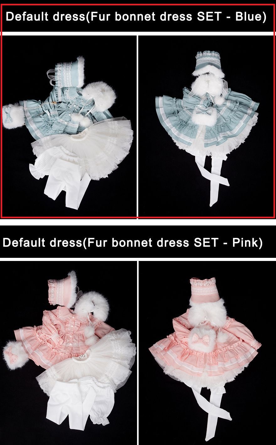 Fur Bonnet Dress Set(7点セット): ボンネット、ワンピース、スカート、ケープ、ハンドウォーマー、ドロワーズ、ストッキング