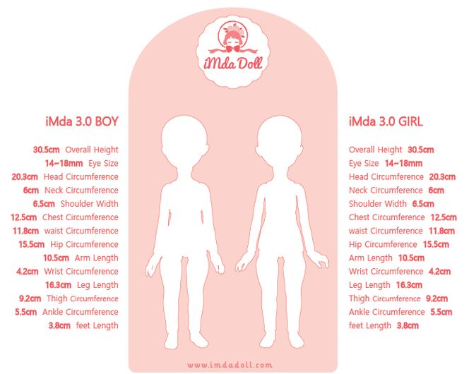 | 3.0 Girl (30cm) | 30.5 | 20.3 | 6 | 6.5 | 12.5 | 11.8 | 15.5 | 10.5 | 4.2 | 16.3 | 9.2 | 3.8 | --- | 7.5~8 | 14~18 | |
