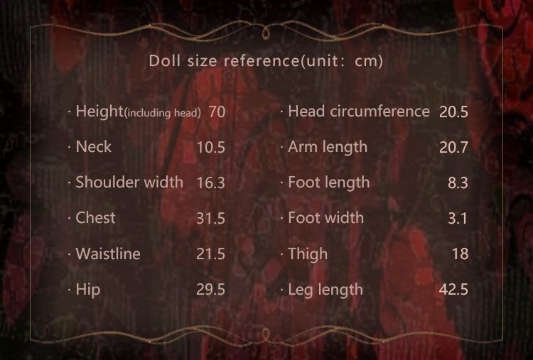 | 70cm Boy B003 | 70 | 20.5 | 10.5 | 16.3 | 31.5 | 21.5 | 29.5 | 20.7 | --- | 42.5 | 18 | 8.3 | 3.1 | 8~9 | 14 |