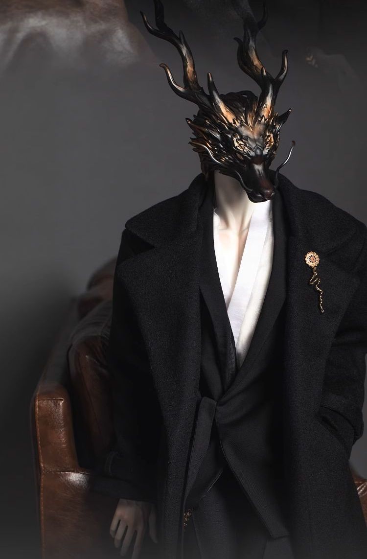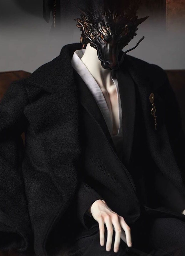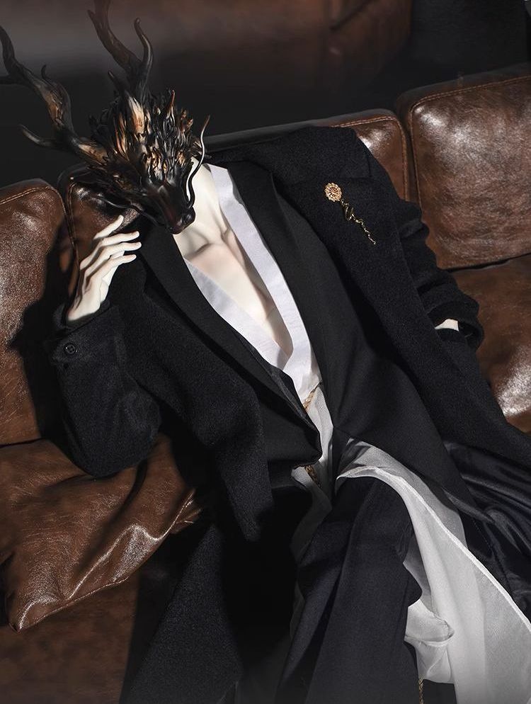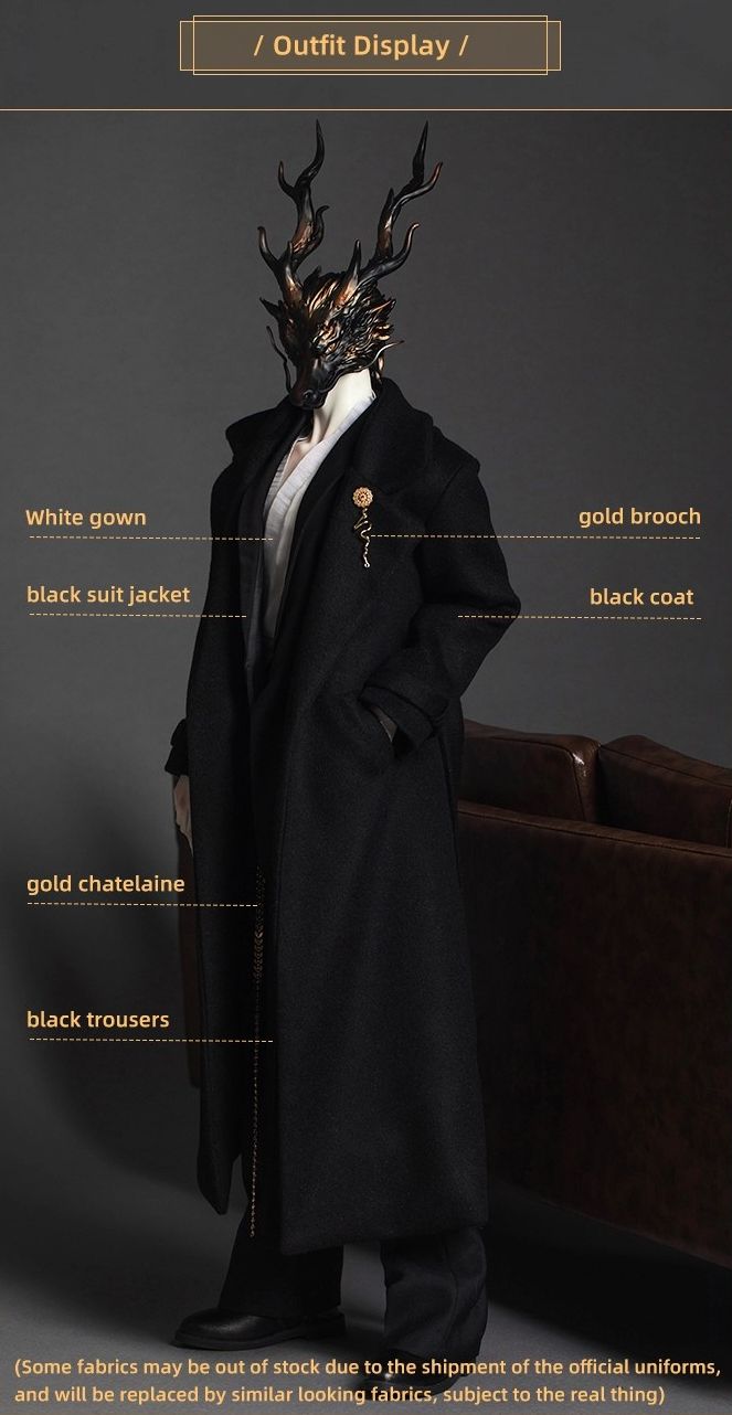 Black Set: パンツ、ジャケット、コート×2、ウエストチェーン、ブローチ