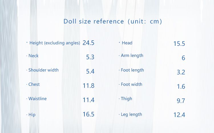 ※ 各サイズはメーカー公式データを記載しています。実際のドール・アイテムには個体差により多少の誤差があります。