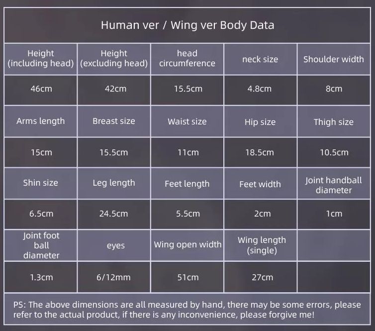 ※ 各サイズはメーカー公式データを記載しています。実際のドール・アイテムには個体差により多少の誤差があります。