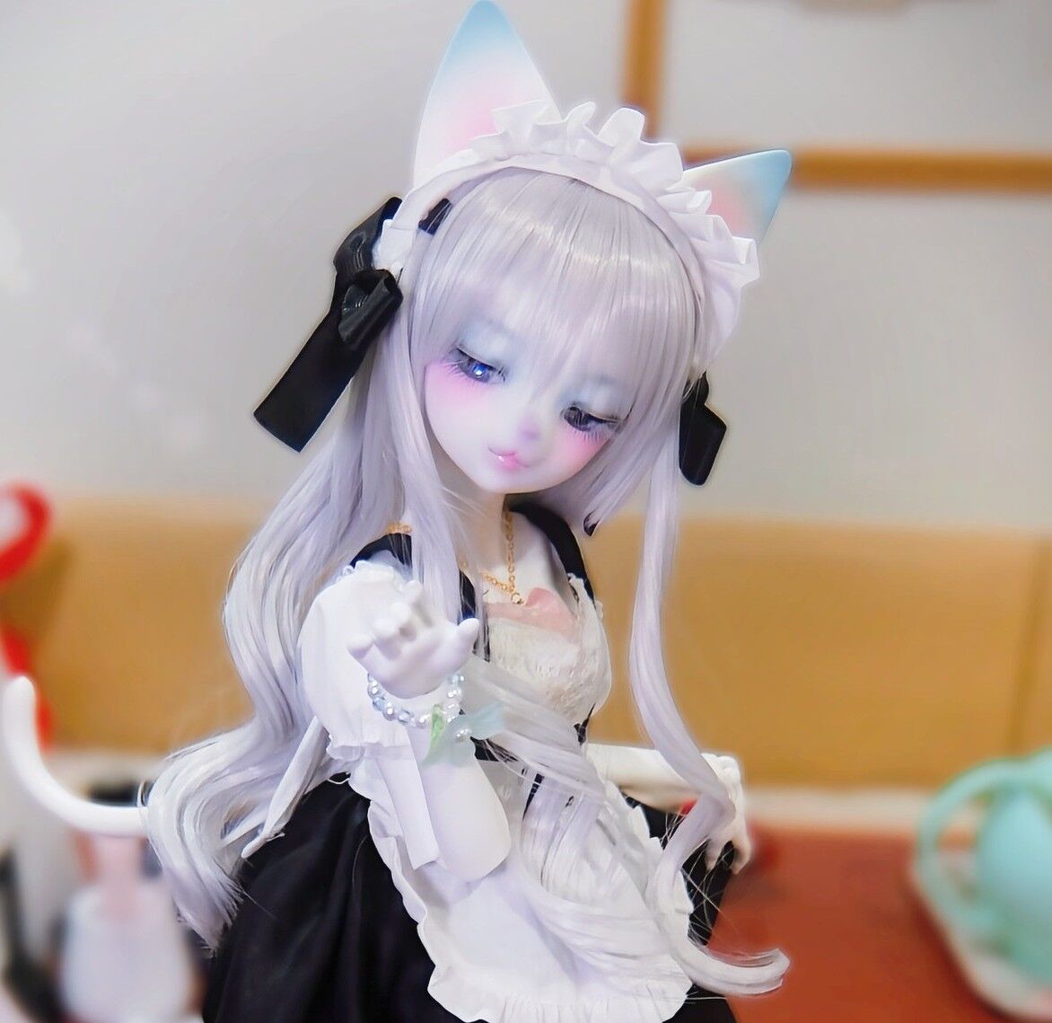 艶やかな流し目のようにも見える造形を、紫陽花カラーのメイクで手掛けるのは、過去にも人気猫ドールのメイクを手掛けている実力派アーティストHeebom氏。ピンクとブルーのグラデーションカラーを巧みに操りながら神秘的な白いまつ毛で仕上げることで、気品あふれる紫陽花カラーの猫妖精が誕生しています。