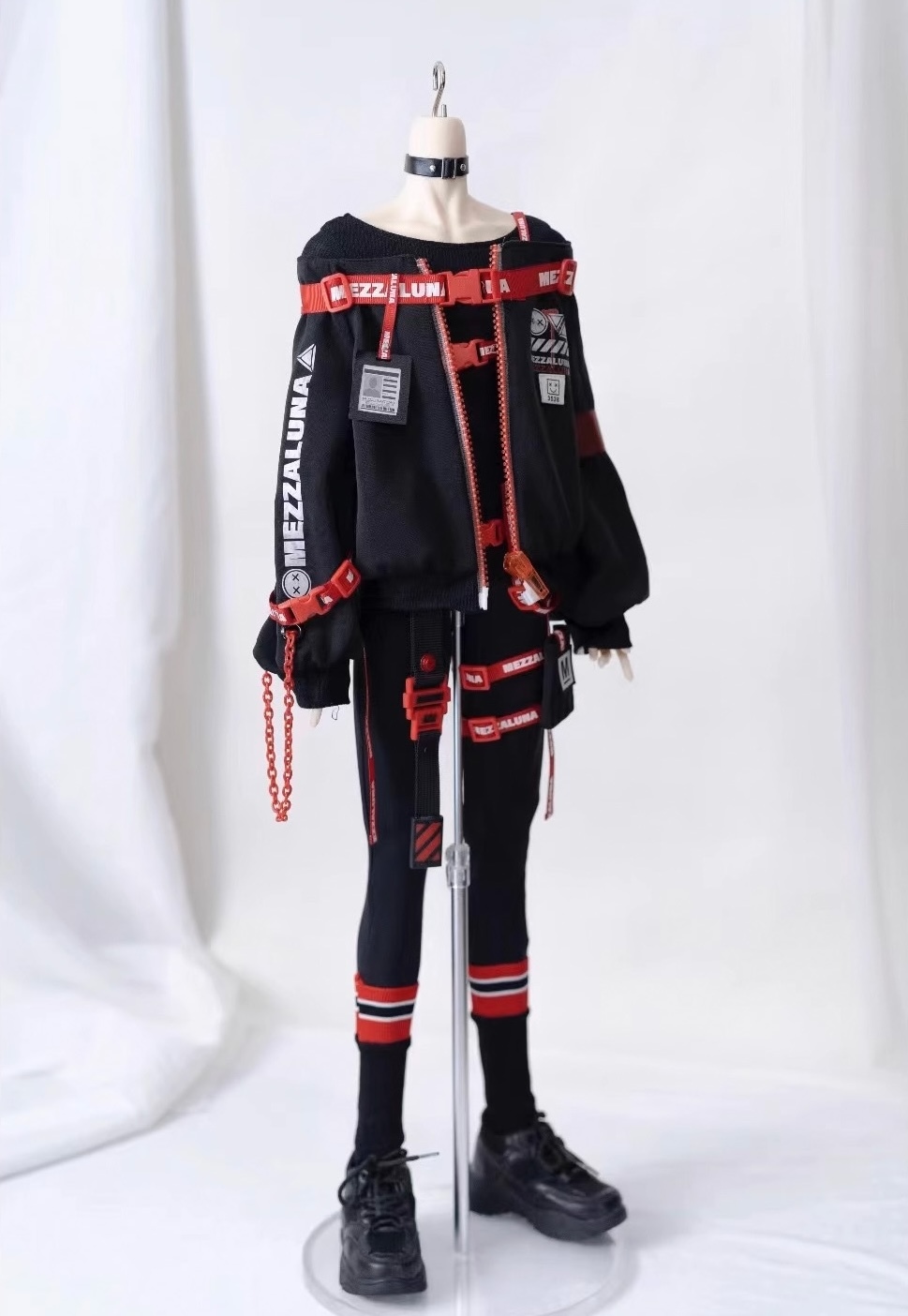 ベルトパンクセット黒紅(ヘッドフォン付き:要耳机)popo68【MezzaLuna:噬神师】