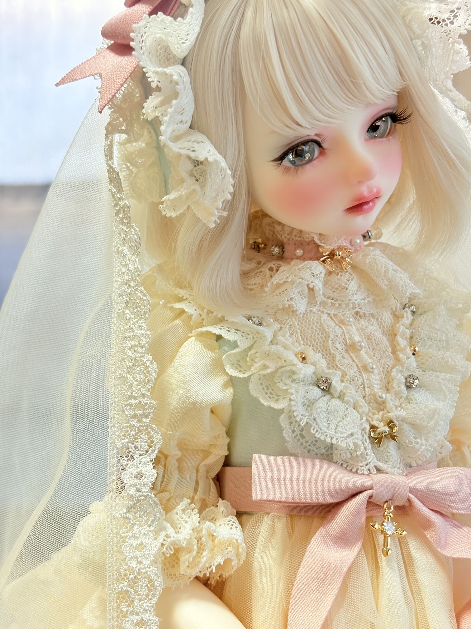 多数のサンプル制作を経て、ブロンドの白雪姫に似合う妖精のようなライトブルーの限定アイが誕生しています。SWAN DOLL自身が考案する白雪姫の瞳と、DOLKのプロデュースによって唯一無二の宝石の瞳となりました。
