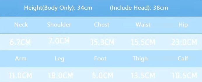 ※ 各サイズはメーカー公式データを記載しています。実際のドール・アイテムには個体差により多少の誤差があります。