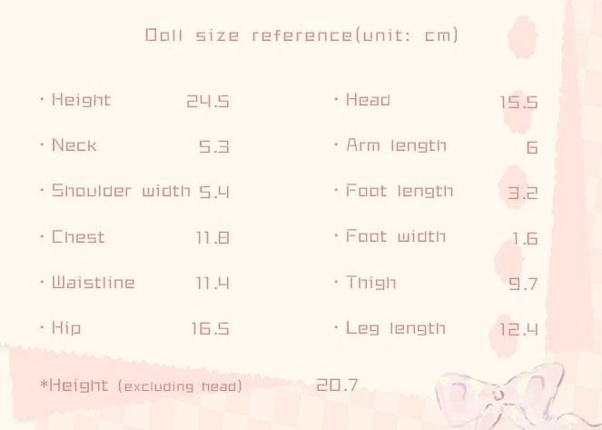 ※ 各サイズはメーカー公式データを記載しています。実際のドール・アイテムには個体差により多少の誤差があります。