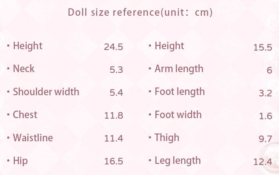 ※ 各サイズはメーカー公式データを記載しています。実際のドール・アイテムには個体差により多少の誤差があります。