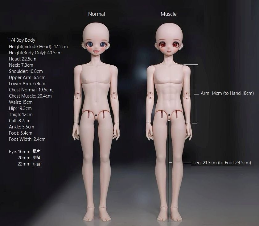 | 1/4 Boy: Muscle | 47.5 | 22.5 | 7.3 | 10.8 | 20.4 | 15 | 19.3 | 14 | --- | 21.3 | 12 | 5.4 | 2.4 | 8~9 | 16~22 |