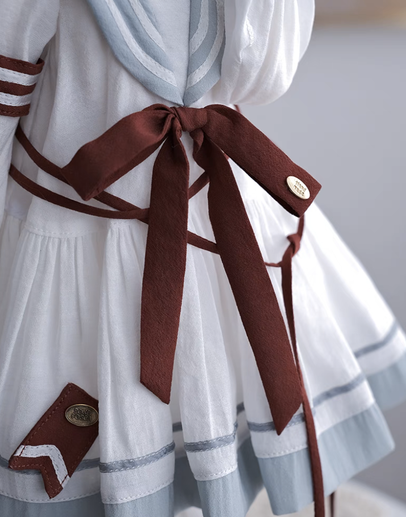 セーラー服風スカートドレス: ブルー(40cm,MSD,MDD対応)