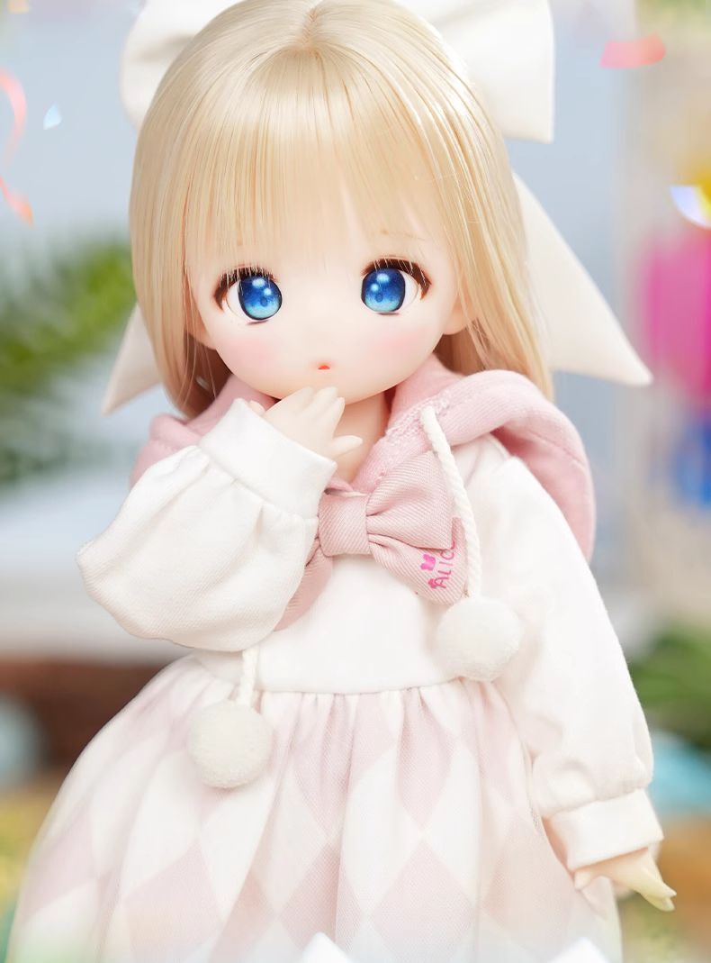 夏場の高温や輸送中に長時間日光にさらされると、ドールが柔らかく感じることがあります。この場合は、涼しい場所で約2時間、または冷蔵庫で約1時間保管すると硬く戻ります。冬の低温による変形は、ドライヤーやぬるま湯に1分ほど浸けて温めることで復元可能な場合があります。