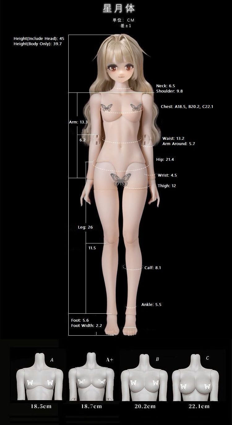 | 1/4 Girl (星月体): A+胸 | 45 | 18 | 6.5 | 9.8 | 18.5 | 13.2 | 21.4 | 13.3 | 4.5 | 26 | 12 | 5.6 | 2.2 | 7 | 14 | |