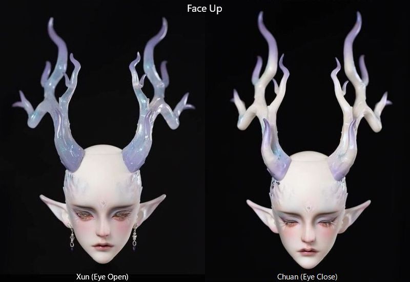 • Add Chuan Head (Eye Close) -Peach Skin, Translucent Horn Blue-Purple (璃川 粉白肌 半透流光龙角 蓝紫) ( + 17,900  )