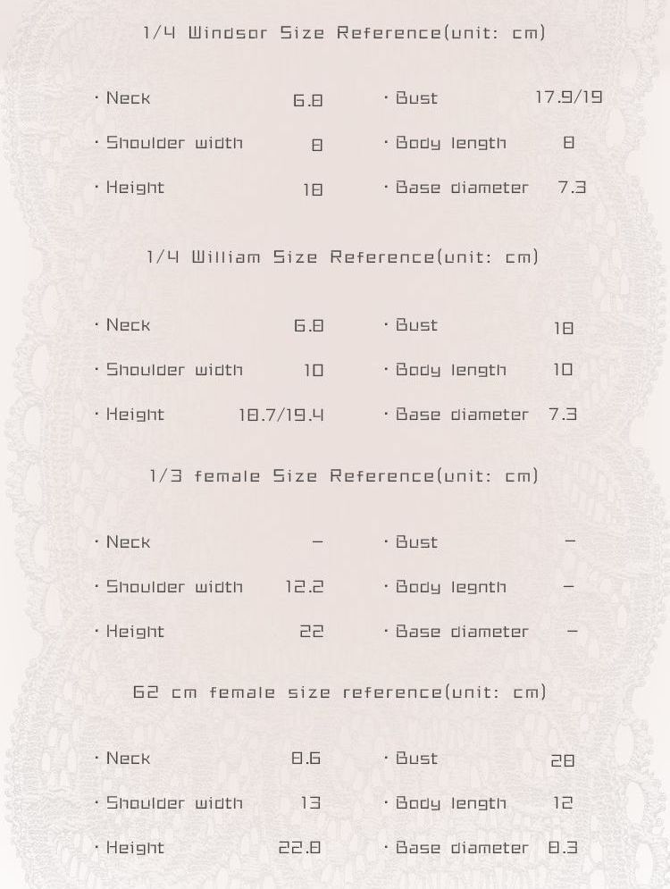 | 1/3 Girl 003(温雅体): M | 62 | 19.5 | 8.6 | 13.3 | 26 | 16.9 | 27.3 | 23.5 | --- | 36.5 | 15.8 | 6.8 | 2.7 | --- | --- | |