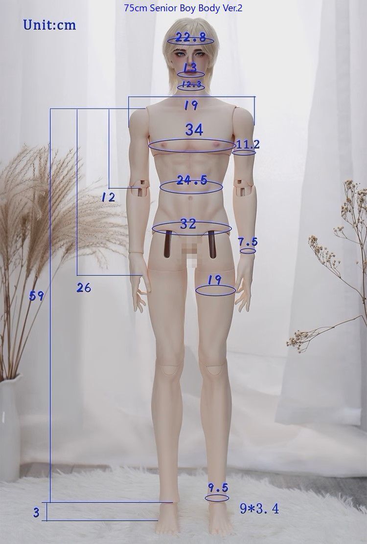 | 75cm Senior Ver.2: S (壮叔 默认) | 75 | 22.8 | 13 | 19 | 34 | 24.5 | 32 | 26 | 7.5 | 36 | 19 | 9 | 3.4 | 8~9 | 14 | |