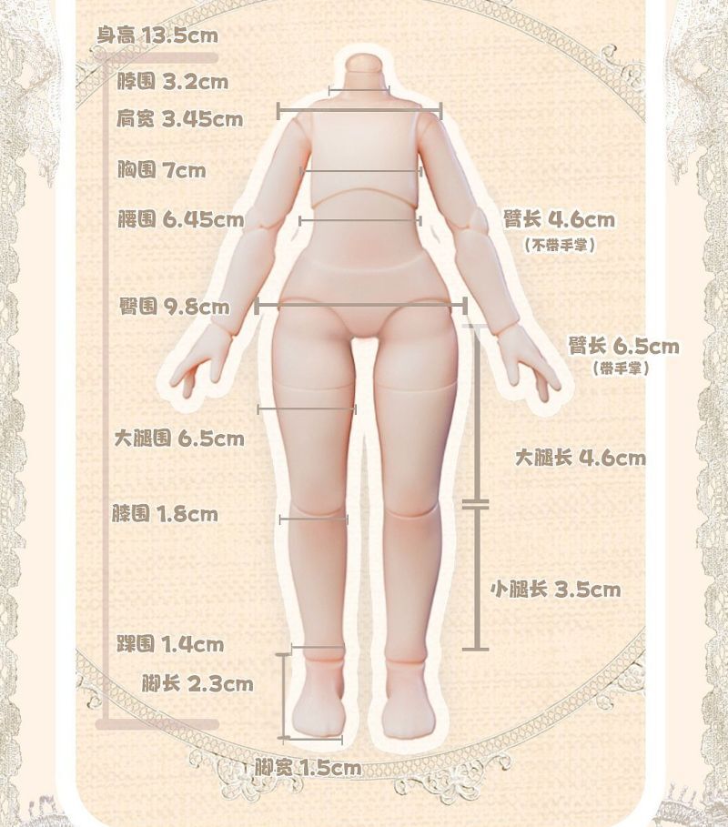 ※ 各サイズはメーカー公式データを記載しています。実際のドール・アイテムには個体差により多少の誤差があります。