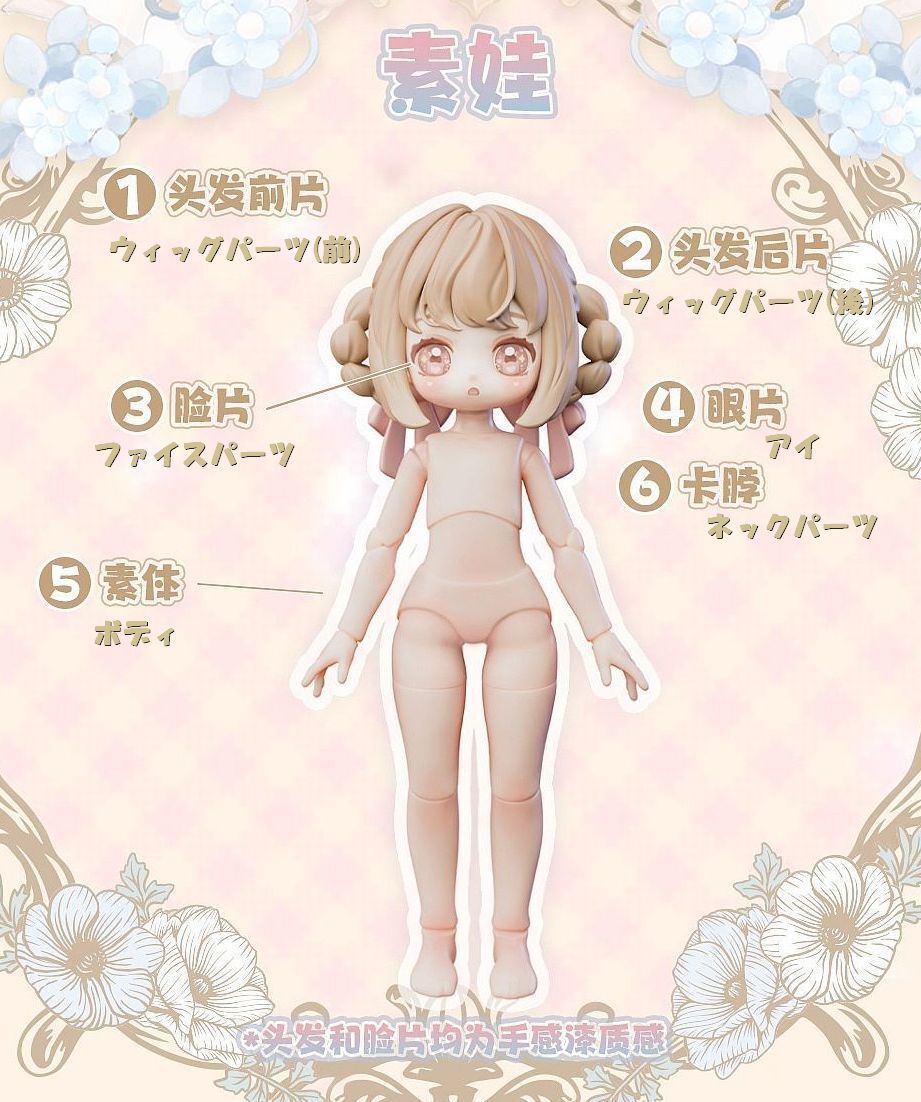 お届けする商品本体(ヘッド+ボディ など)について、 組み立て状態やメイクの有無・ボディの種類などが記載されます。