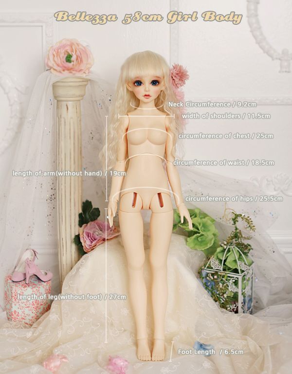 ドール本体、またはモデルドール、または商品のサイズ情報が表示されます。