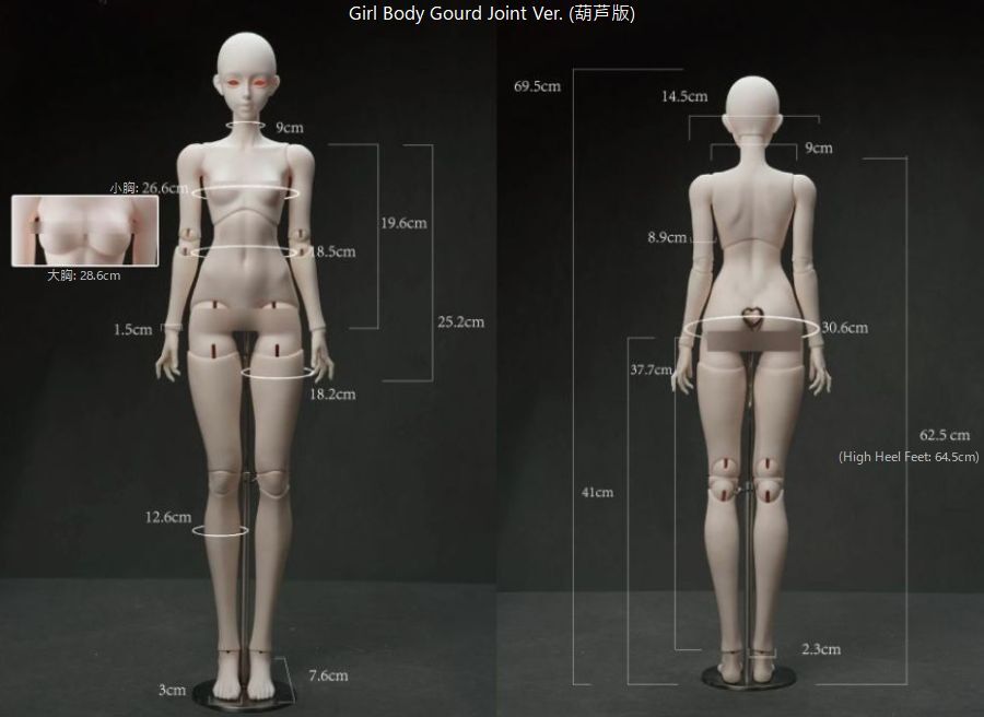 少女体 葫芦版: 小胸 69.5 20.7 9 14.5 26.6 18.5 30.6 19.6 --- 41 18.2 7.6 3 8~9 16