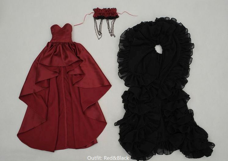 Red&Black: カラー(ショルダーチェーン付)、ロングテールワンピース、ペチコートスカート