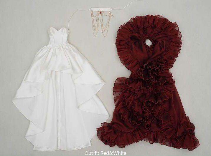 Red&White: チョーカー(ショルダーチェーン付)、ロングテールワンピース、ペチコートスカート