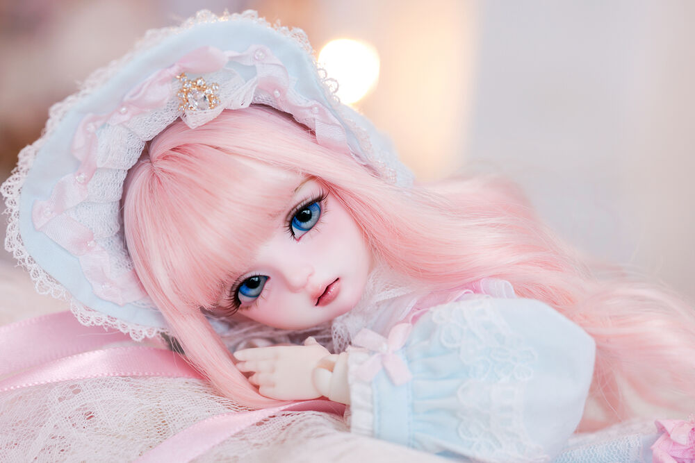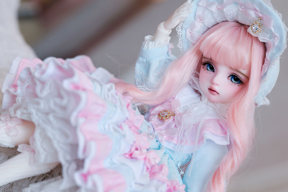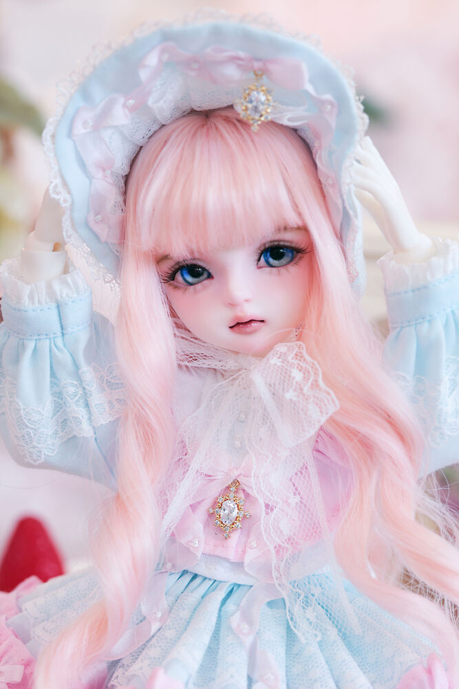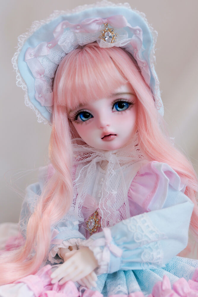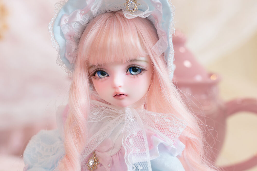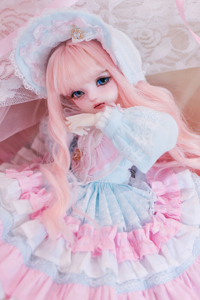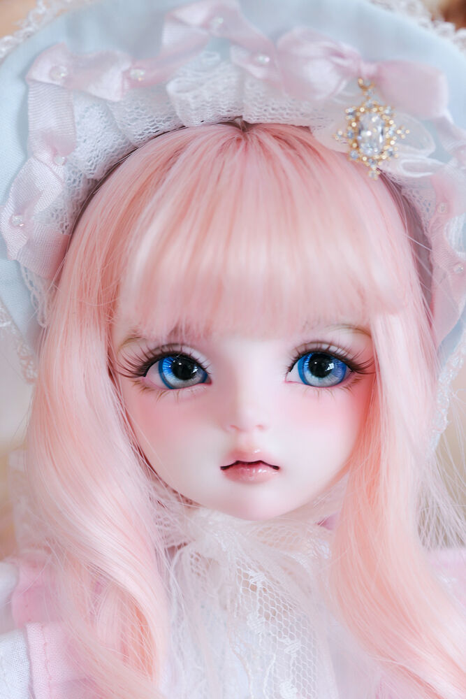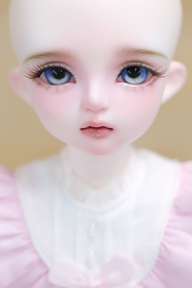 一本一本丁寧に描かれた眉や下まつげ、果実のように瑞々しいチークや唇など、緻密な筆致によって生み出されたその表情は、DOLLY HOUSE公式のBluebellとはまた違った新たな魅力を開花させています。