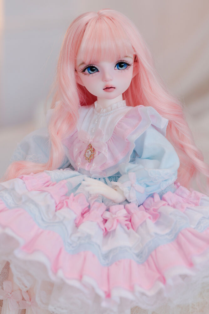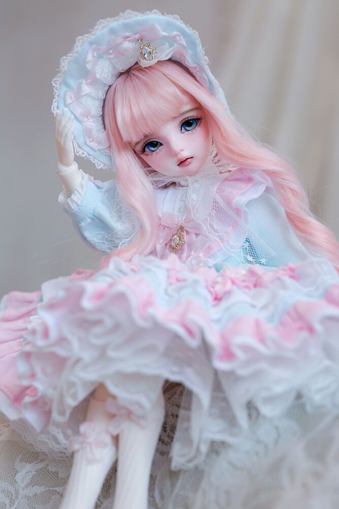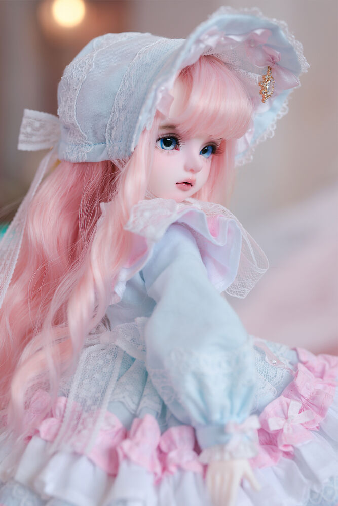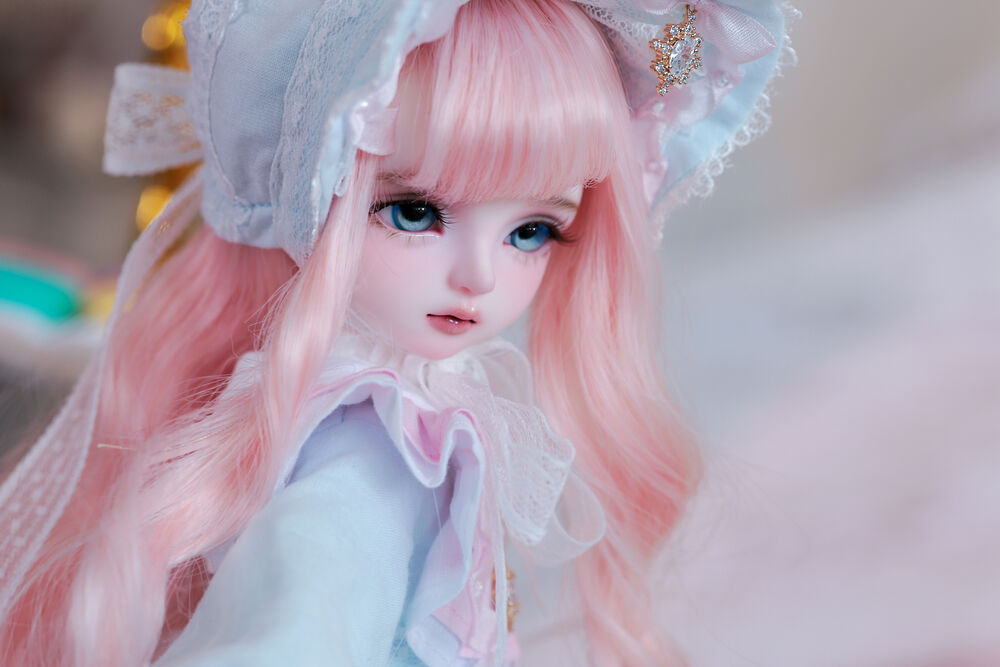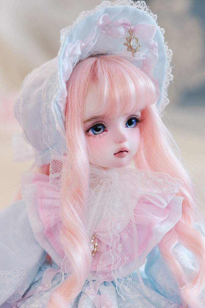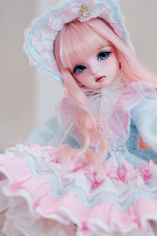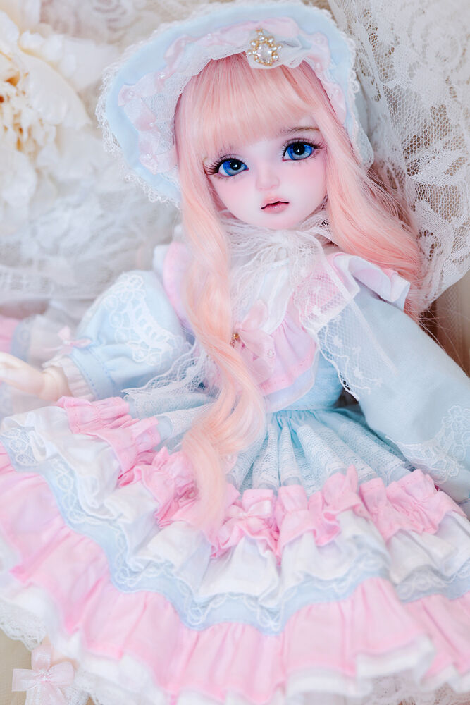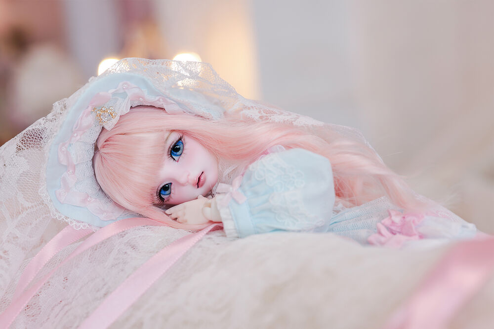 一本一本丁寧に描かれた眉や下まつげ、果実のように瑞々しいチークや唇など、緻密な筆致によって生み出されたその表情は、DOLLY HOUSE公式のBluebellとはまた違った新たな魅力を開花させています。