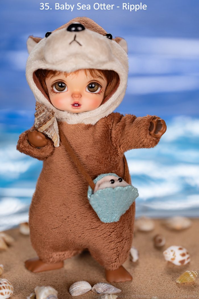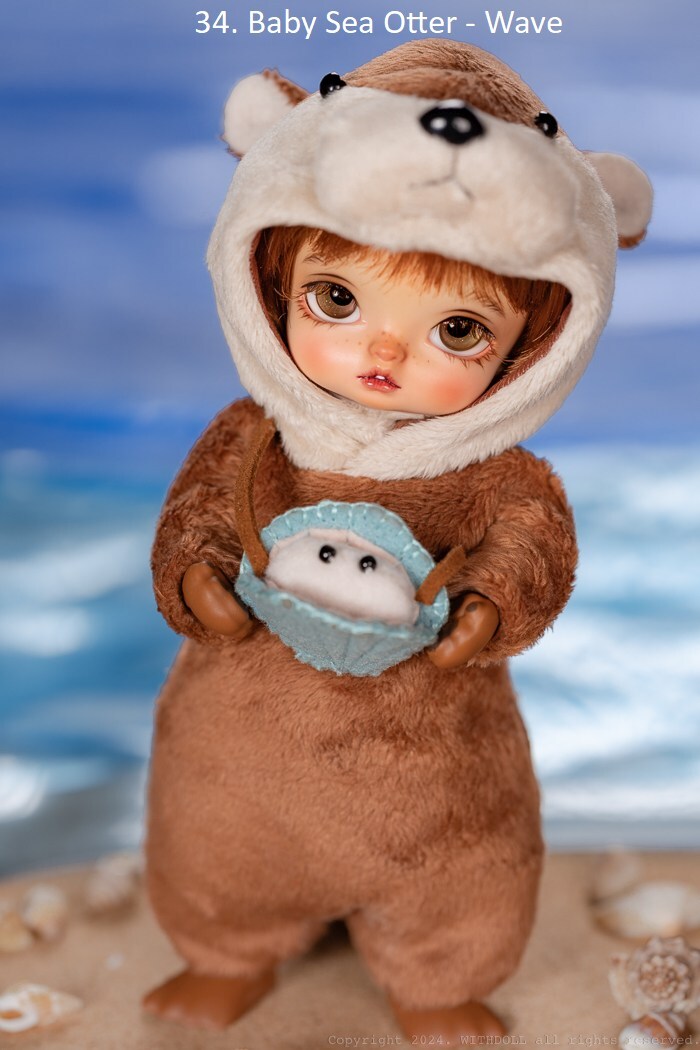 34-35. Baby Sea Otter:フード付ジャンプスーツ、カバン
