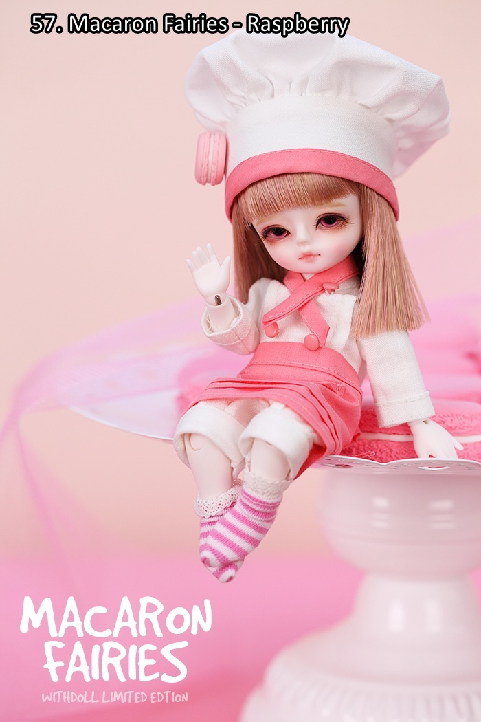 57. Macaron Fairies (Raspberry):帽子、ジャンプスーツ、エプロン、靴下