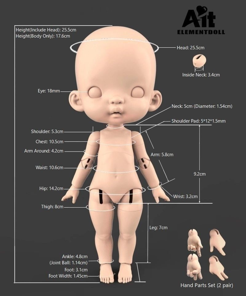 ※ 各サイズはメーカー公式データを記載しています。実際のドール・アイテムには個体差により多少の誤差があります。