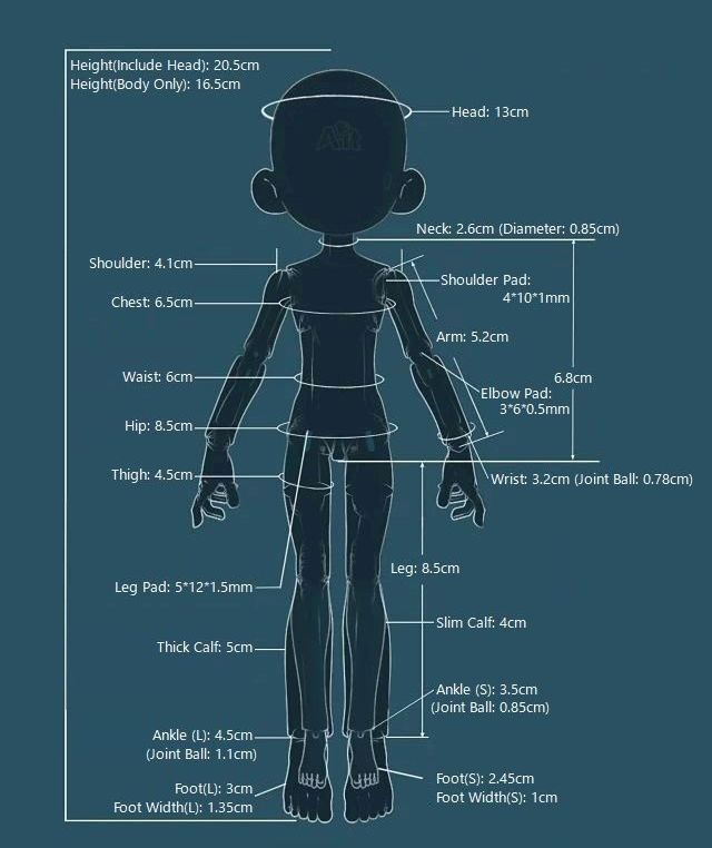 ※ 各サイズはメーカー公式データを記載しています。実際のドール・アイテムには個体差により多少の誤差があります。