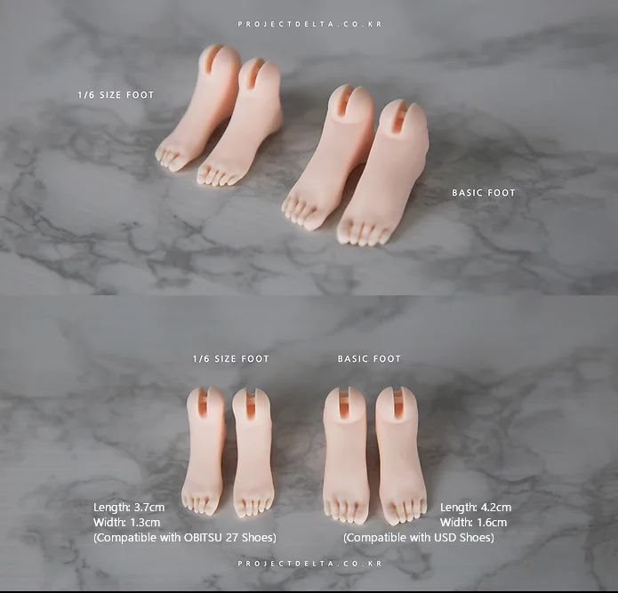 1/6 Foot(Compatible: OBITSU 27 Shoes): Length 3.7cm, Width 1.3cm