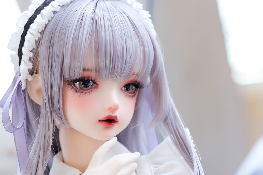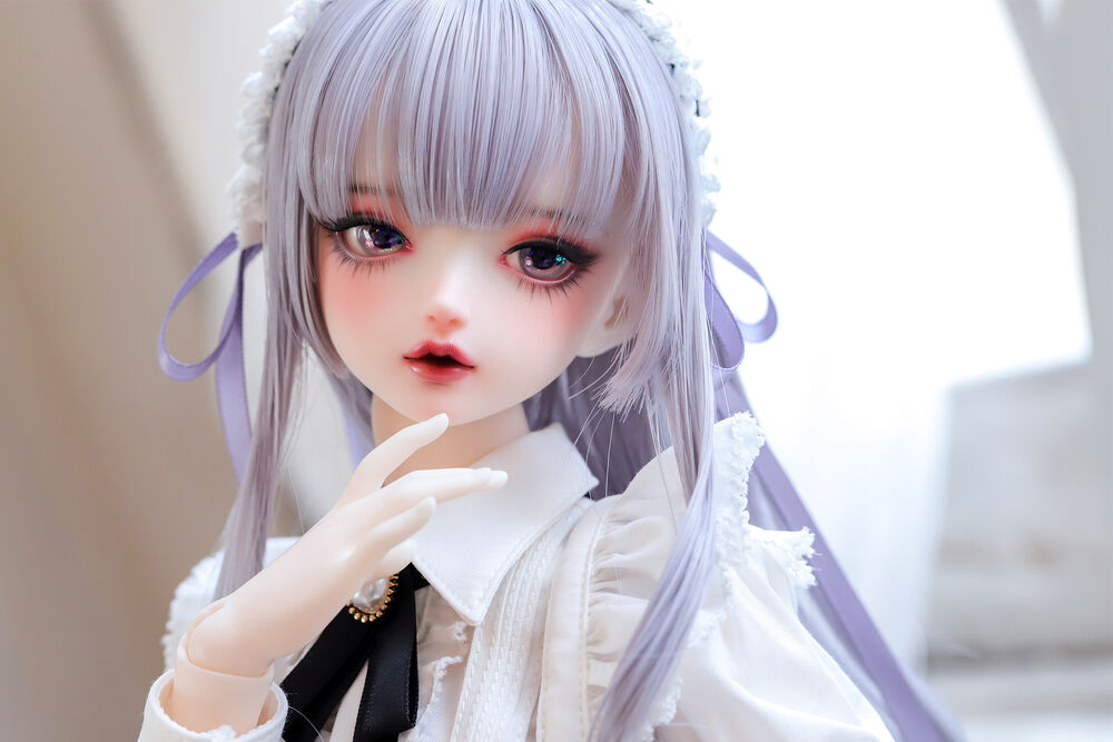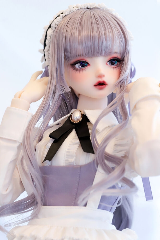 優雅な雰囲気をより高めるカールが巻かれたウィッグは、BY SUN Eのメイド服のカラーにあわせた上品なシルバー系の繊維を採用。顔周りの姫カットと長めの後れ毛をデザインし、ドールウィッグの最高峰のデザイナーによるテクニカルなスタイリングを施すことで毛の流れまで洗練されたコラボ限定の特注ウィッグとなっています。