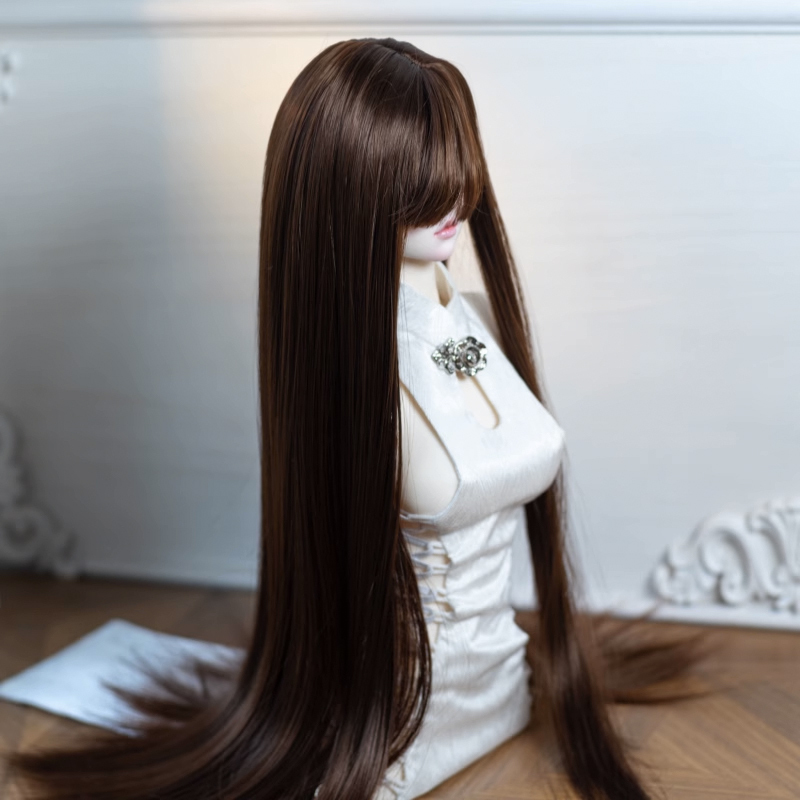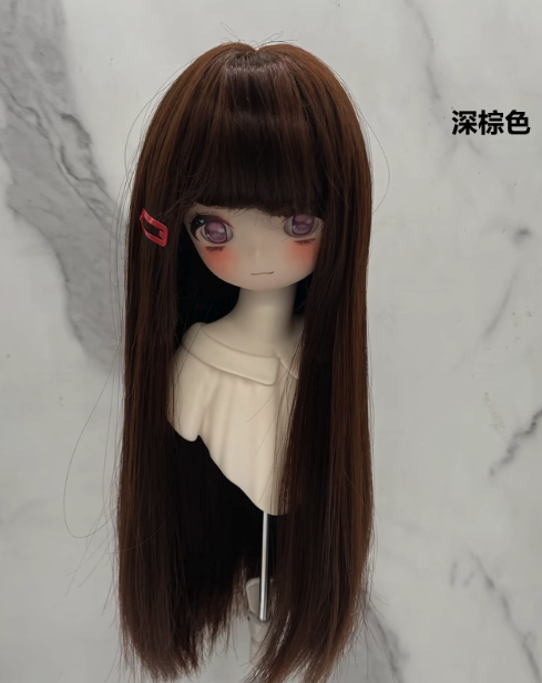 • 前髪ありストレートロング:ダークブラウン(7-8inch対応)
