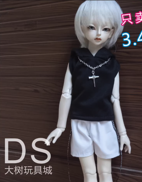 ノースリーブパーカー+アウターセット:ブラックアウター/黒帽子(30cm対応)