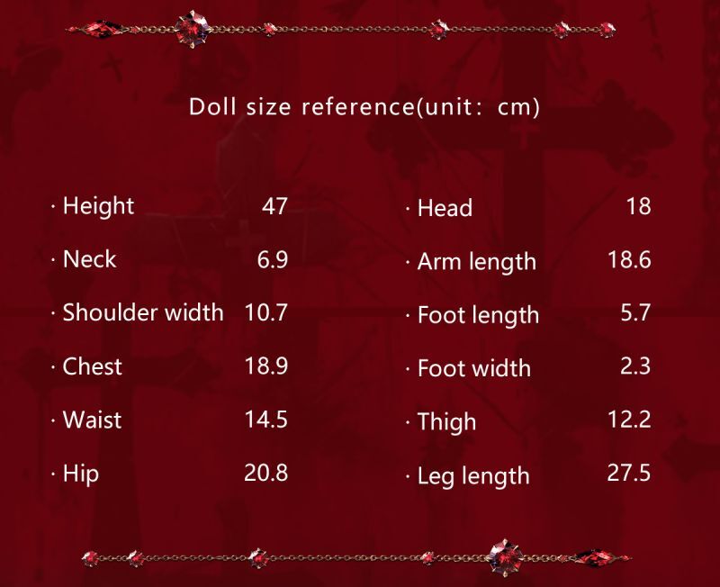 ※ 各サイズはメーカー公式データを記載しています。実際のドール・アイテムには個体差により多少の誤差があります。