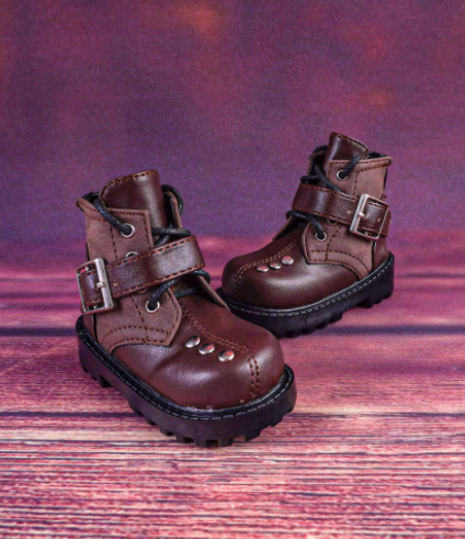 • スリーボタンショートブーツ:ブラウン(70cm対応)