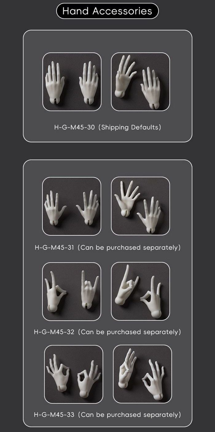 • H-G-M45-33 Hand Parts -White, Pink Skin (瓷白,白,桃白,粉白,浅粉,月白) ( + 4,600  )