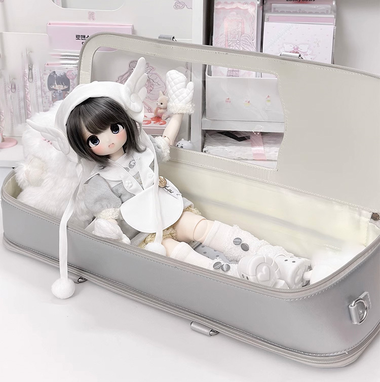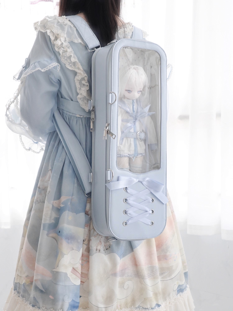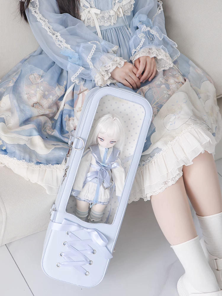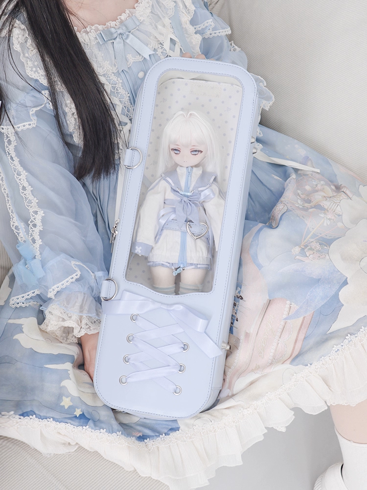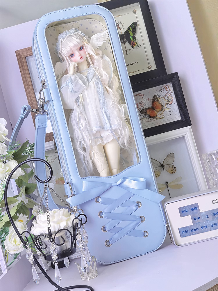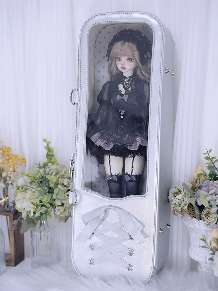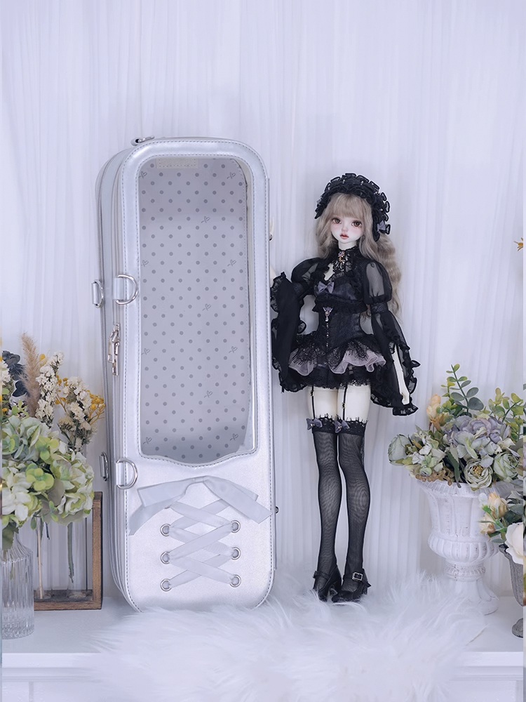 • 編みリボンドールバッグ:シルバー(40cm対応)