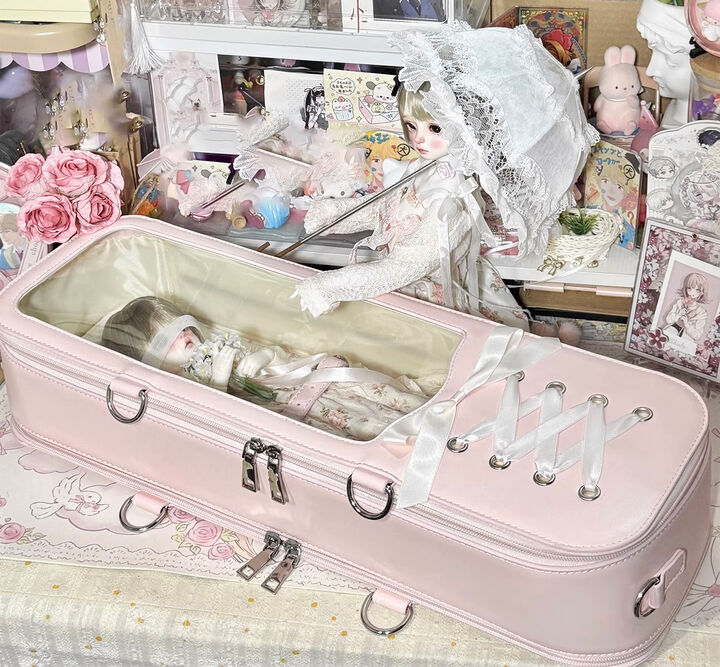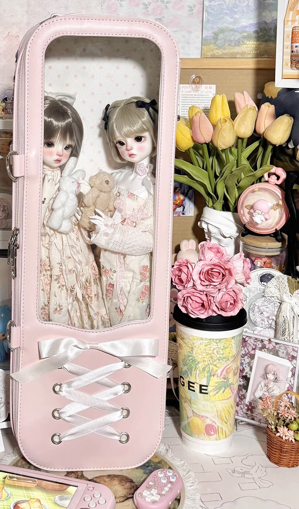 • 編みリボンドールバッグ:ピンク(40cm対応)