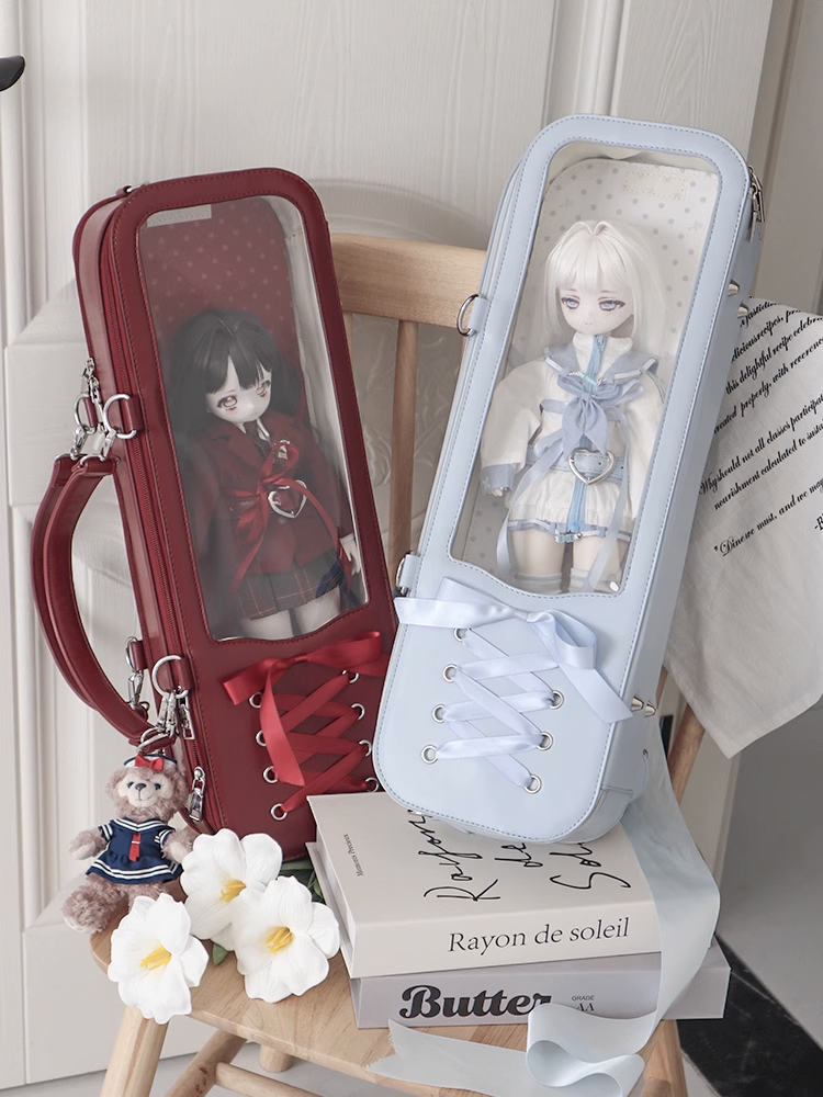 編みリボンドールバッグ:ライトブルー(40cm対応)