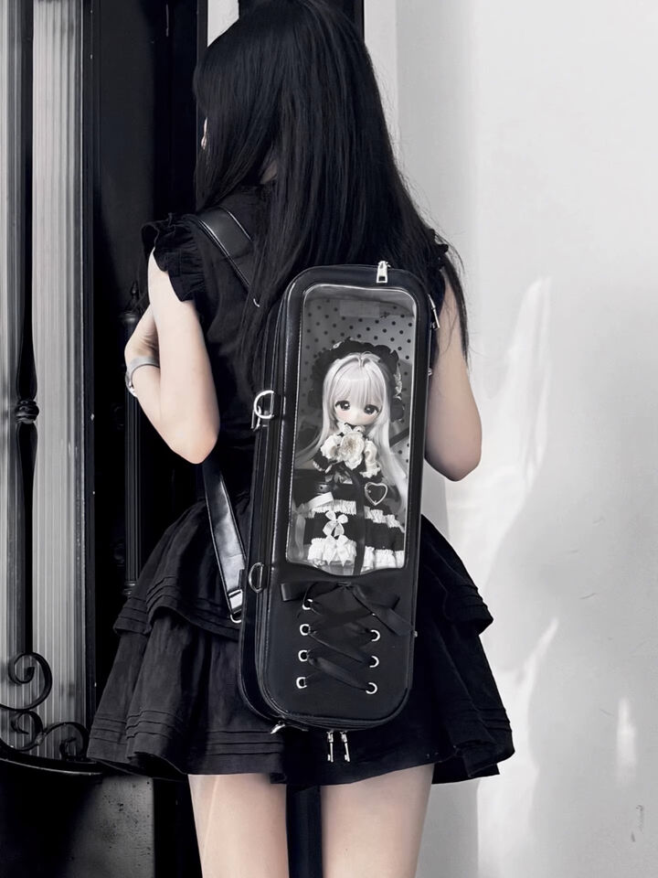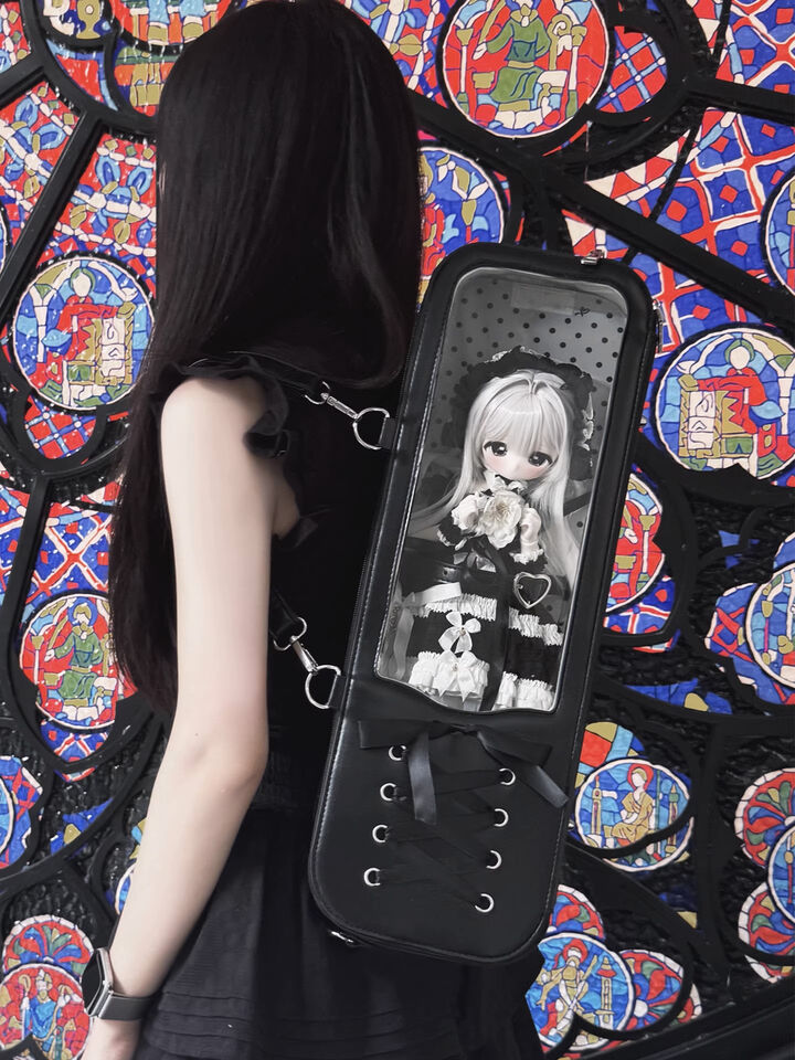 • 編みリボンドールバッグ:ライトブルー(40cm対応)