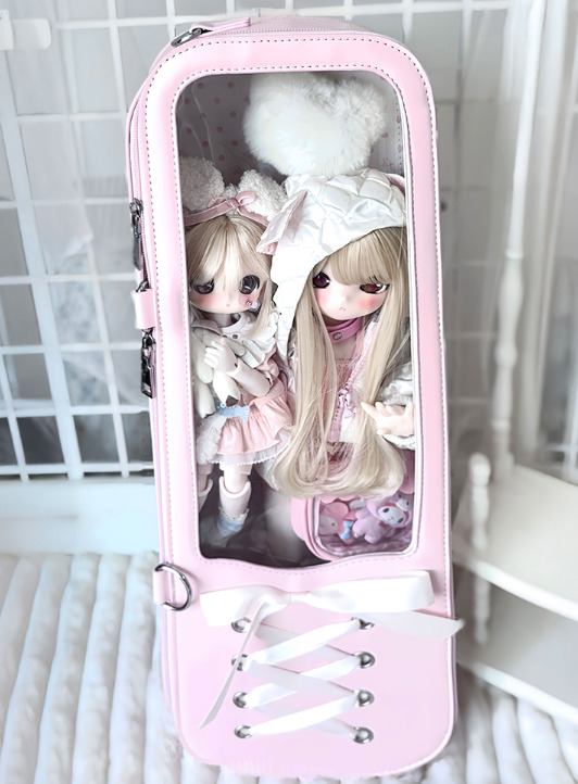 編みリボンドールバッグ:ホワイト(40cm対応)